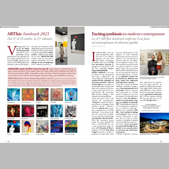 L’opera Astratto Merisi è in mostra all’ARTfair di Innsbruck con la galleria Biancoscuro di Pavia dal 27 al 29 ottobre 2023.